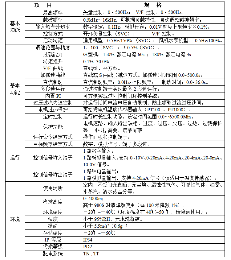 电源 | +10V- 0V | 外接+ 10V 电源 | 向外提供 +10V 电源,最大输出电流:10mA一般用作外接电位器工作电源,电位器阻值范围:1kΩ~5kΩ |